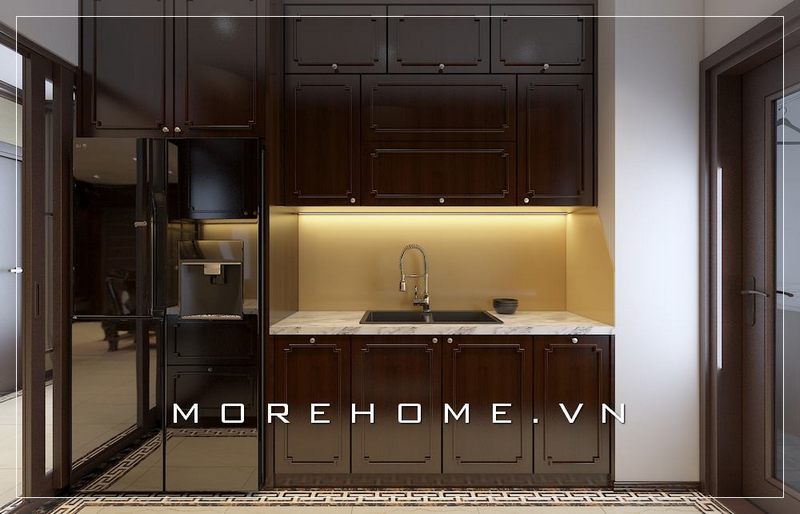 Mẫu thiết kế tủ bếp gỗ tự nhiên cao cấp cho phòng bếp biệt thự