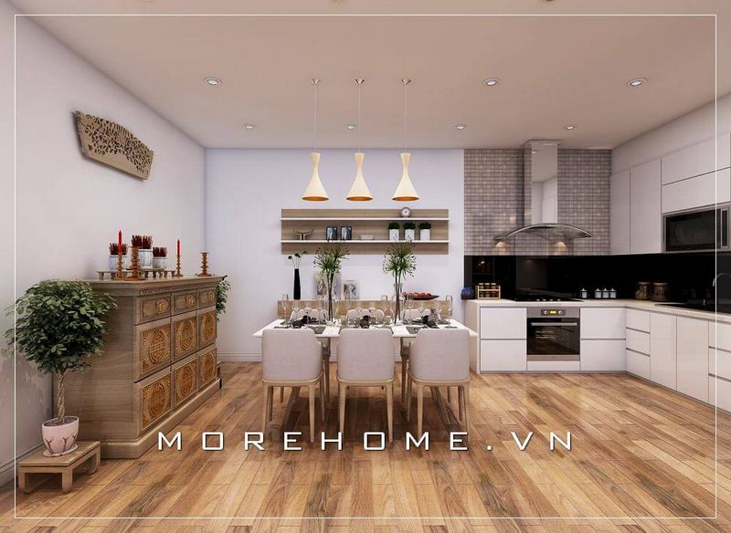 Thiết kế nội thất phòng bếp chung cư hiện đại, đơn giản và tiện nghi