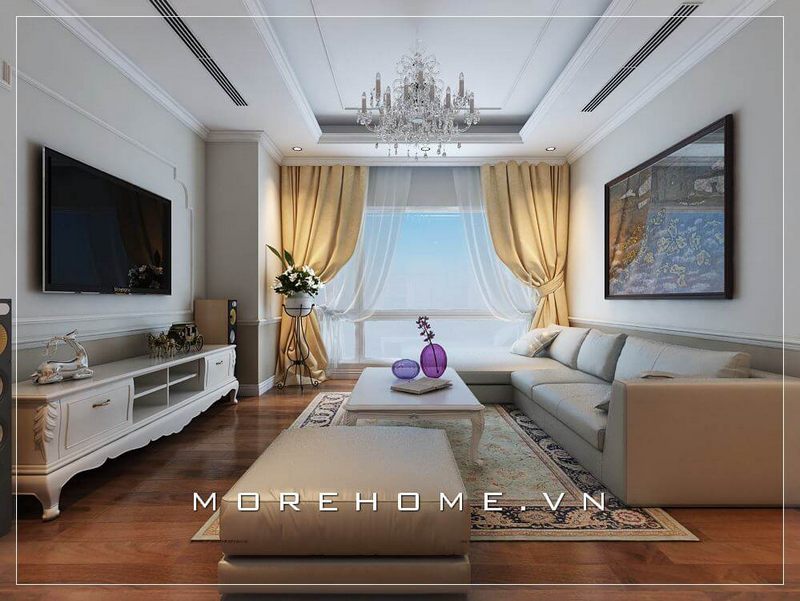 Bộ sofa đẹp màu be sữa cao cấp tạo điểm nhấn nổi bật cho không gian phòng khách chung cư